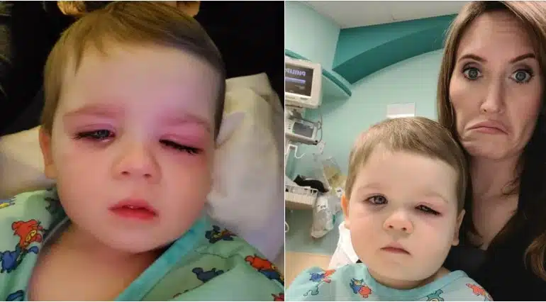 Părinții l-au dus din nou la spital, iar medicii i-au prescris antibiotice. A doua zi dimineață, ochiul lui Baylor era atât de umflat încât nici nu-l putea închide. Mai mult decât atât, micuțul făcuse și febră.